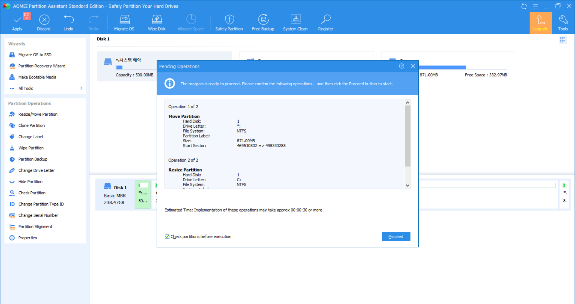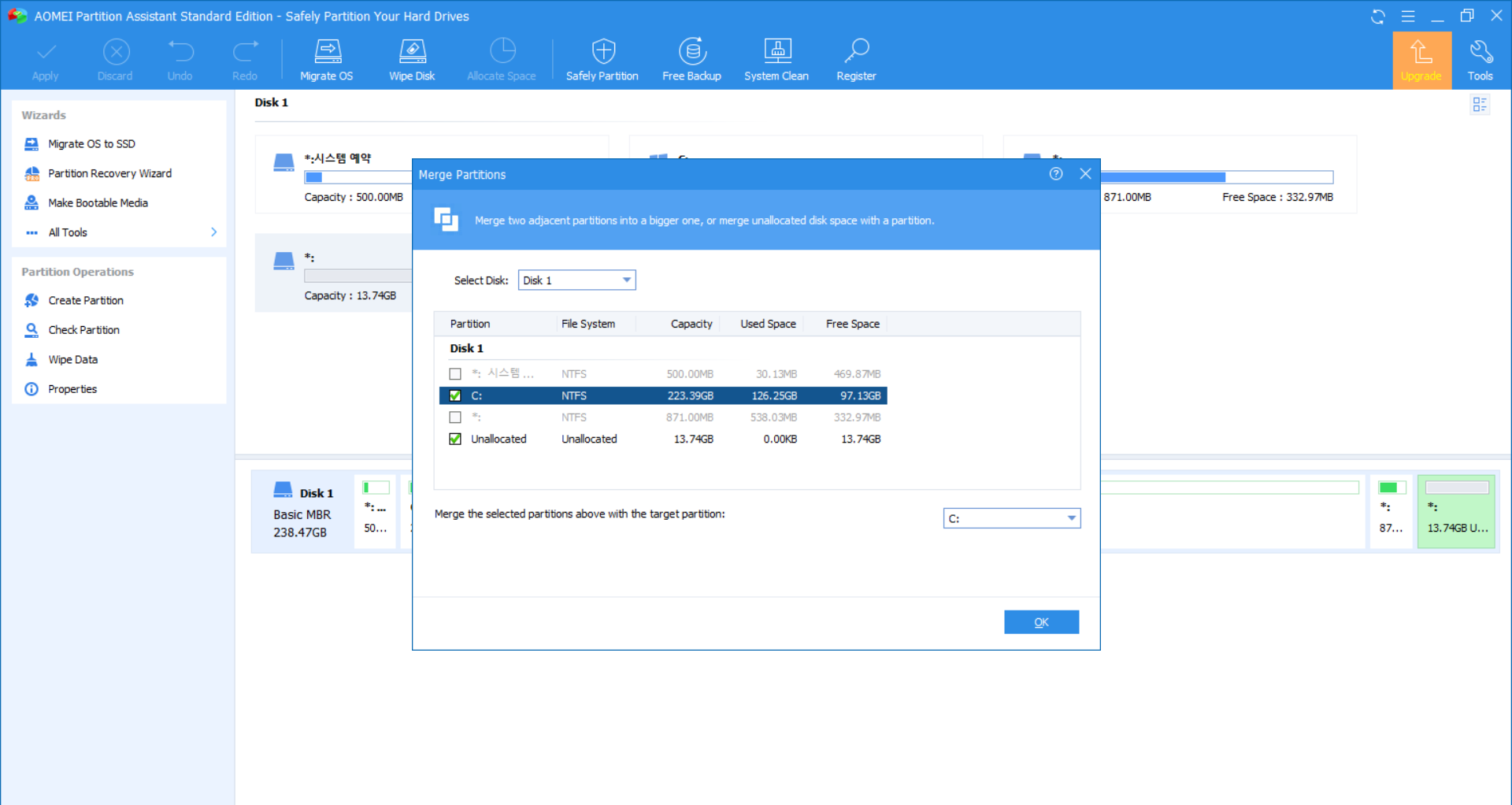 로딩이 끝나고 확인 눌러주면 드라이브 합치기 끝입니다.